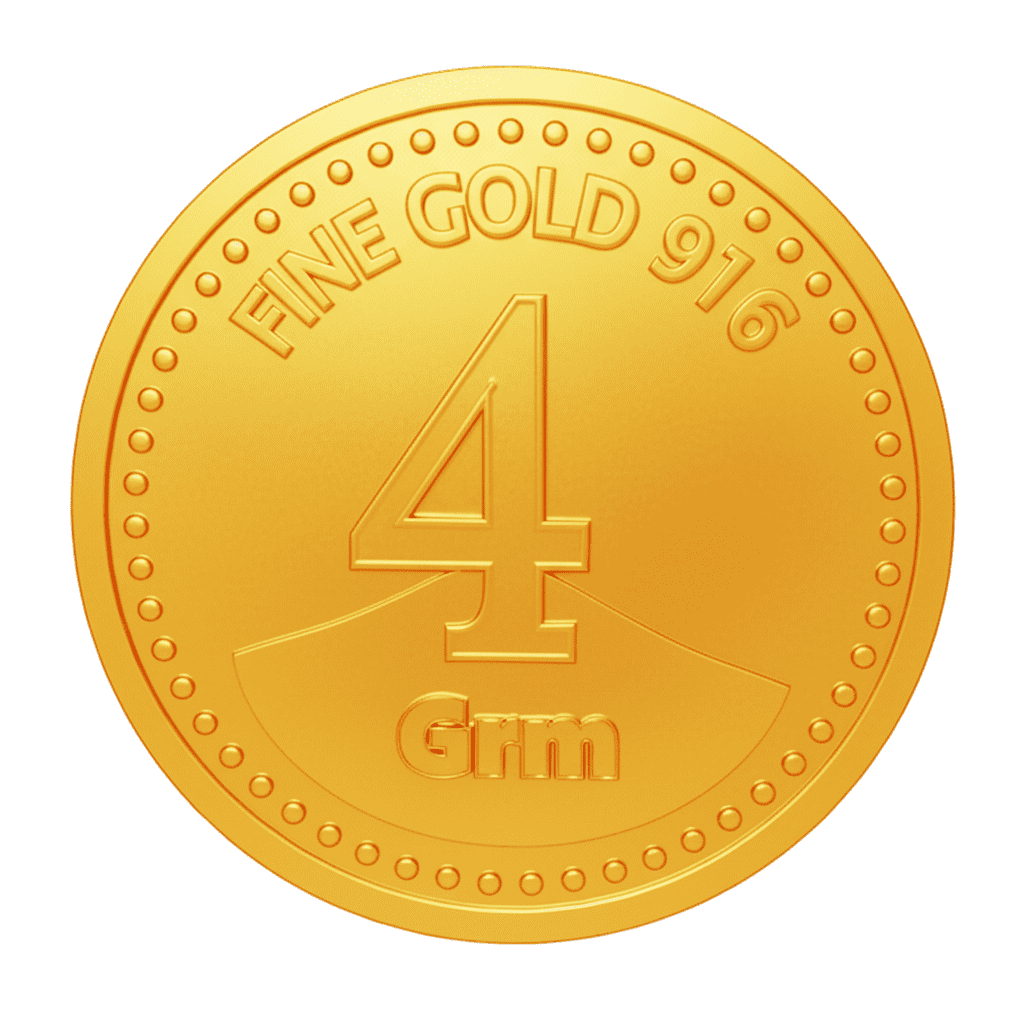 Four (4) gm 22KT 916 purity BIS certified gold coin / bullion in blister packaging quantity